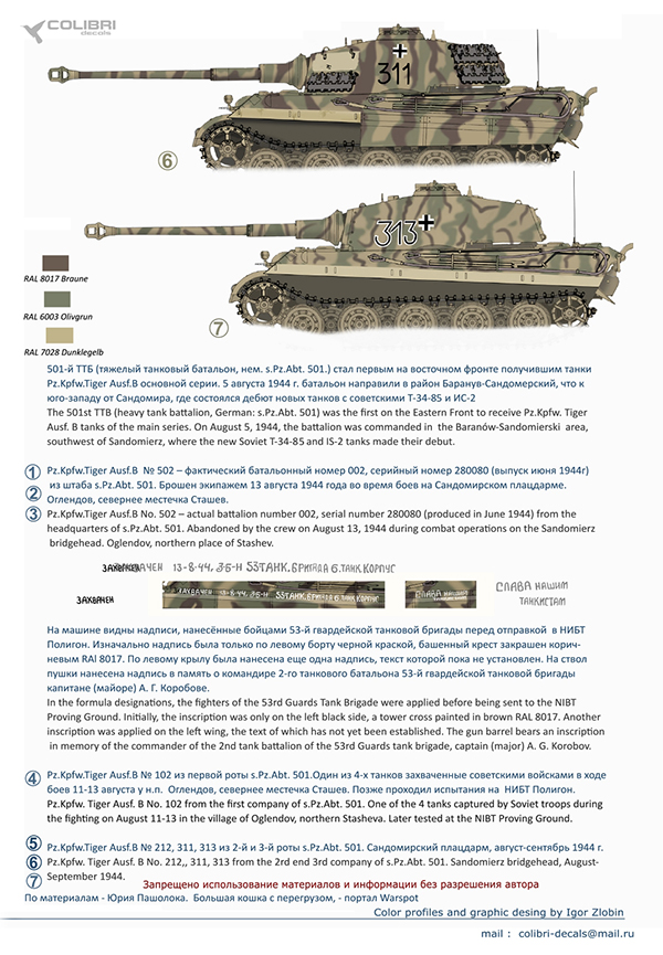 Главная Декали, Маски, Трафареты Colibri Decals Декали 1/35 (БТТ) Colibri Decals 35114 PzKpfw VI Ausf.B Tiger II (s.Pz. Abt 501 - Sandomiertz)