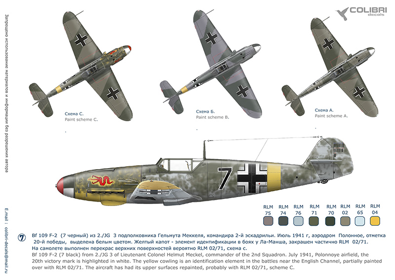 Главная Декали, Маски, Трафареты Colibri Decals Декали 1/72 (Авиация) Colibri Decals 72191 Bf-109 F-2 JG 3 (Operation Barbarossa) -limited edition