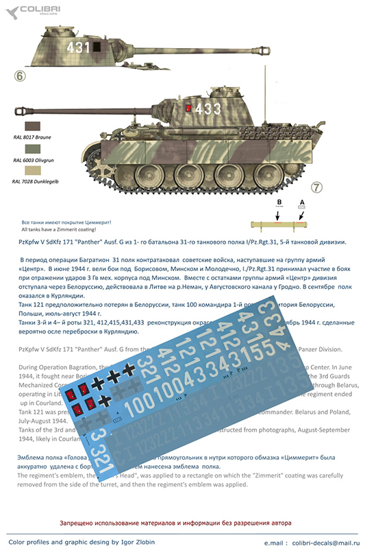 Главная Декали, Маски, Трафареты Colibri Decals Декали 1/35 (БТТ) Colibri Decals 35120 Pz.Kpfw.V Panter Ausf. G. Operation Bagration Part I