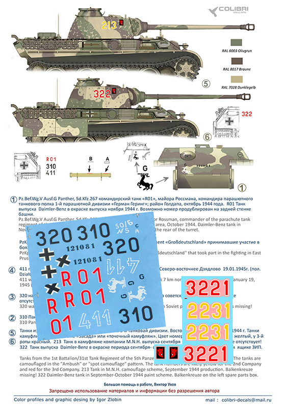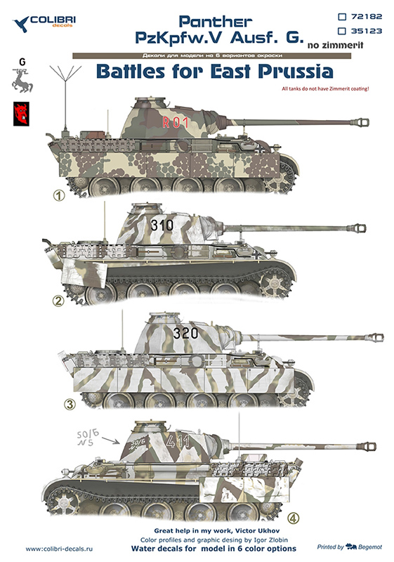 Главная Декали, Маски, Трафареты Colibri Decals Декали 1/35 (БТТ) Colibri Decals 35123 Pz.Kpfw.V Panter Ausf. G. (East Prussia) (без циммерита)