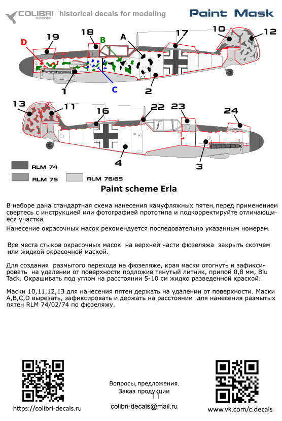 Colibri Decals M48013 Bf 109 F (paint scheme Erla)