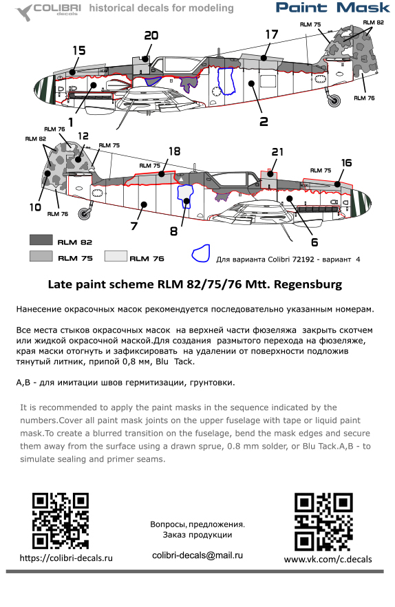 Colibri Decals M48015 Messerschmitt bf 109 G-10 (Mtt Reg.)